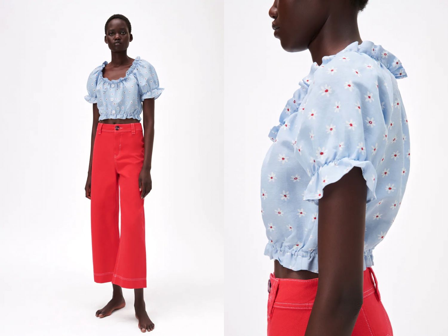 Zara también dispone en sus tiendas de esta blusa con estampado floral. Su precio es de 5,99€ tras la rebaja del 70%. Una gran oportunidad de conseguir esta prenda en azul claro y en tu talla.