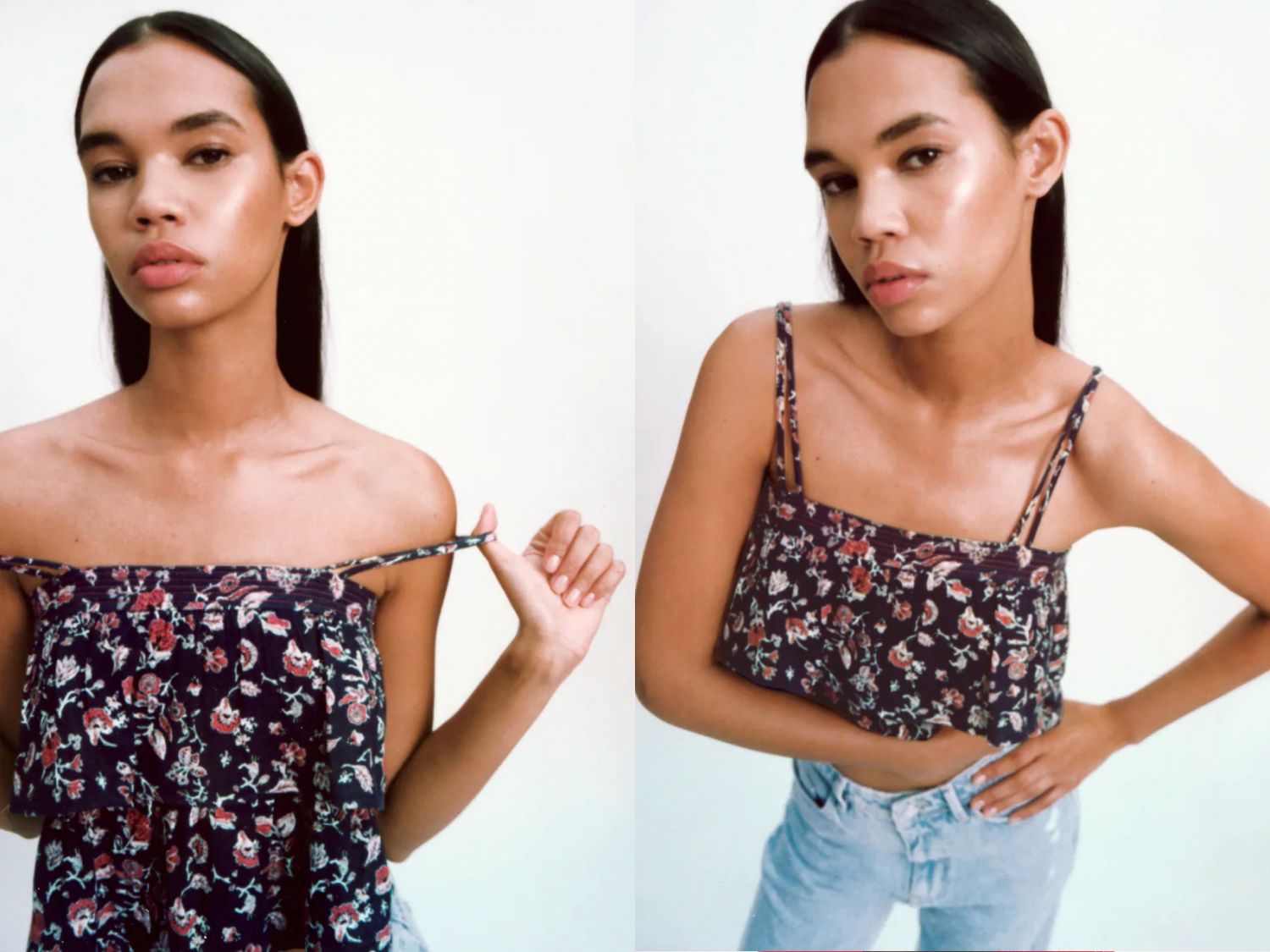 Este top con volantes de Zara también es otro de los estampados que te encantarán para este verano. Mucho más cuando veas que su precio es de solo 5,99€ ahora. Disponible en varias tallas y hecho en 100% fibras de algodón, para una mejor transpiración y absorción para esta época de calor.