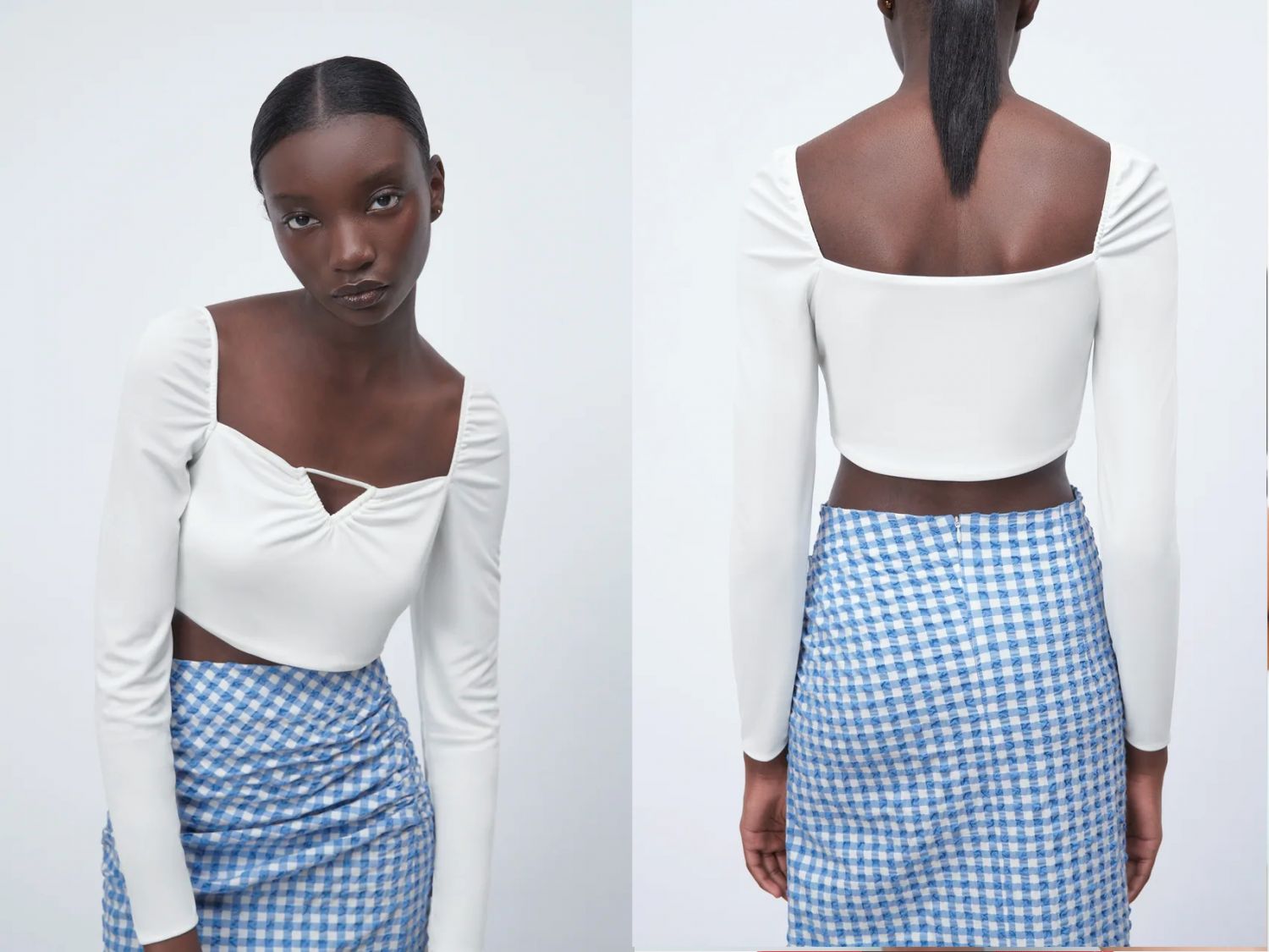 Zara también ha rebajado un 70% este top frunce en color blanco. Ahora puede ser tuyo por solo 3,99€ en todas las tallas. Una ganga que no podrás dejar pasar y que permite gran flexibilidad en cuanto a combinado para tus looks.