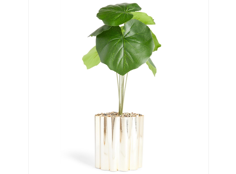 4Macetero dorado con planta artificial