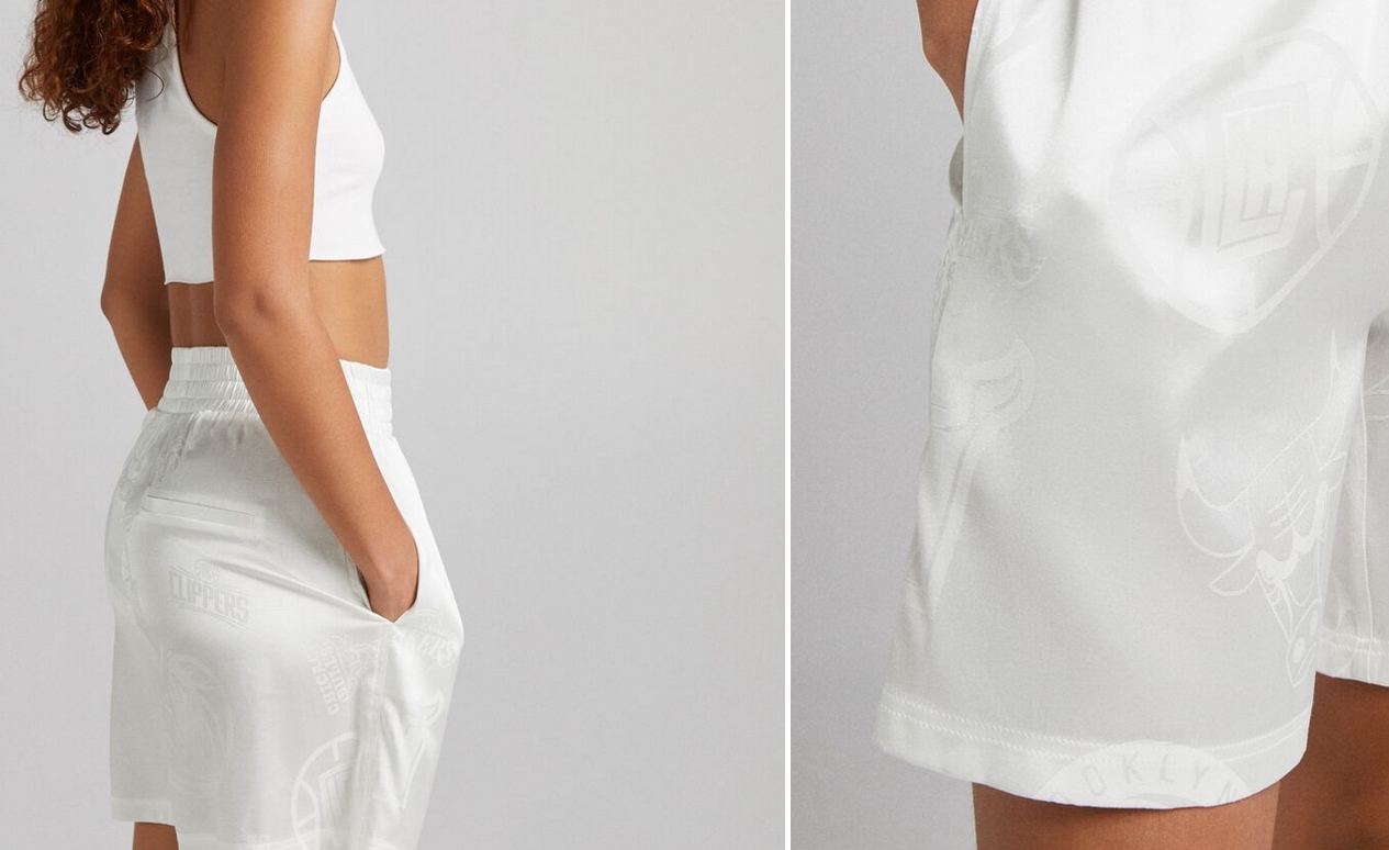 Otras bermudas similares a las anteriores, aunque en un tono blanco con estampados de la NBA. Su precio es de 29,99€ como el anterior. Disponible en varias tallas.