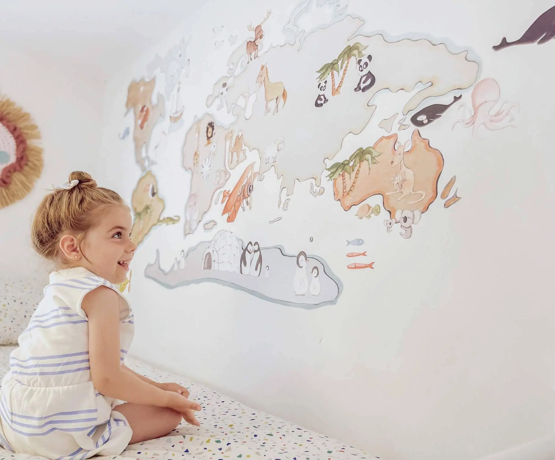 Gracias al diseño y la visión emprendedora de Julia, estos dibujos son plasmados en vinilos adhesivos de diversos tamaños, utilizando tinta de látex no tóxica, así como en una línea de textiles que incluye cojines, fundas nórdicas, tipis, alfombras, cestos para juguetes y otros complementos que harán juego con las paredes donde se coloquen los stickers, cuyo tamaño puede ser hasta el de mural.