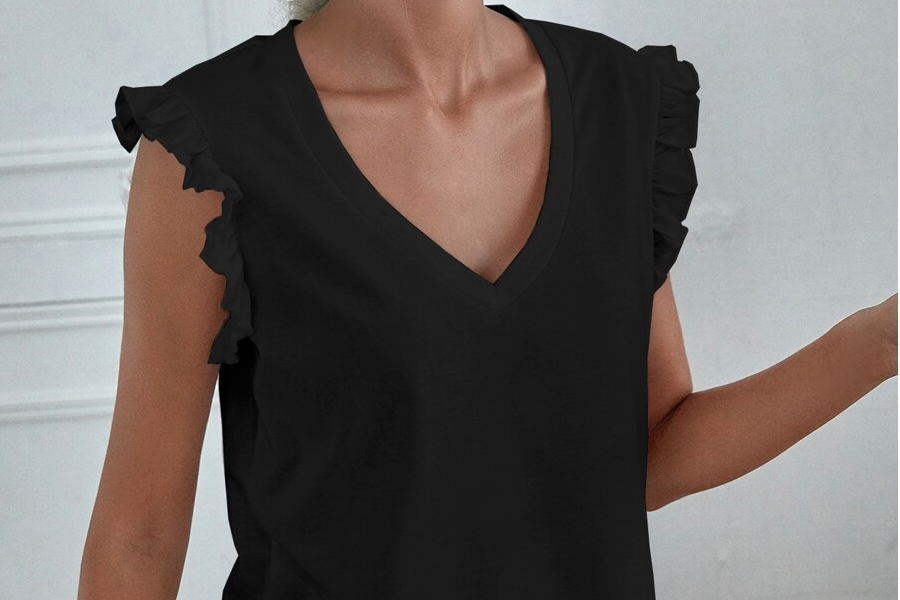 Una de las camisetas mejor valoradas de Shein es esta de escote en forma de V profundo, con ribete fruncido y unicolor. Disponible en varias tallas para pedir la que necesites, y en tres colores para elegir el que más te guste: negro, blanco y naranja. Todos ellos por solo 7€.