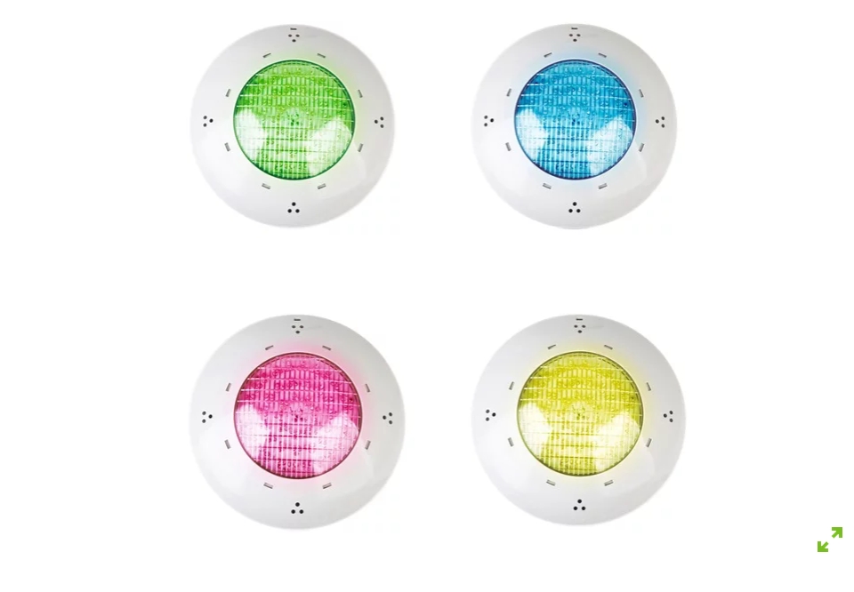 Contienen 144 luces y son capaces de cambiar de color (gama RGB). Su diámetro es de 28 cm y son específicos para piscinas enterradas de hormigón.