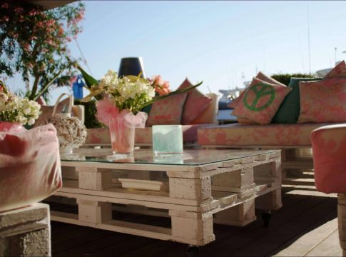 Para espacios interiores como terrazas, jardines o porches, las mesas con palés resultan de gran ayuda para decorar y organizar el lugar, con la posibilidad de adaptarles ruedas para un mejor desplazamiento, hacerlas a manera de cajón para almacenar lo que se requiera, o agrandarlas, para convertirlas en un mueble perfecto en el que se pueda servir una cena al aire libre.