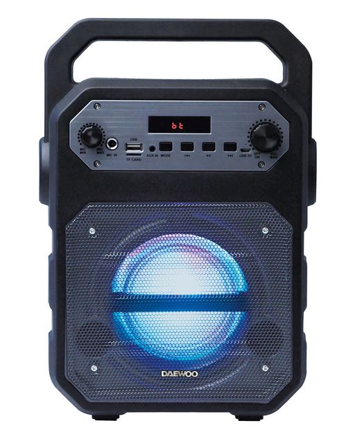 Si buscas algo más para multiplicar la diversión, hazte con un altavoz portátil con karaoke integrado como este fantástico modelo de la marca Daewoo. Tiene un cómodo diseño troley con ruedas para llevar a cualquier parte y cantar o escuchar música a toda potencia. Incluye un micrófono con cable, y cuenta con conexiones SB, Micro SD y Aux-in.
