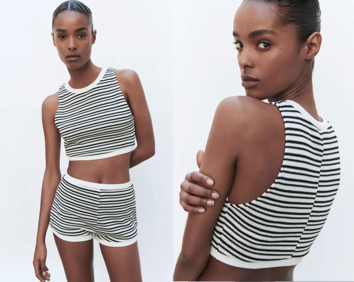 Zara también tiene este top jacquard a rayas. Solo se encuentra disponible en blanco/marino, y en varias tallas. Ahora está rebajado más de la mitad, con un 3.99€. Además, este producto pasa por unos programas de seguimientos para garantizar que se cumplen los estándares de salud, seguridad y calidad, bajo el estándar Green to Wear 2.0.