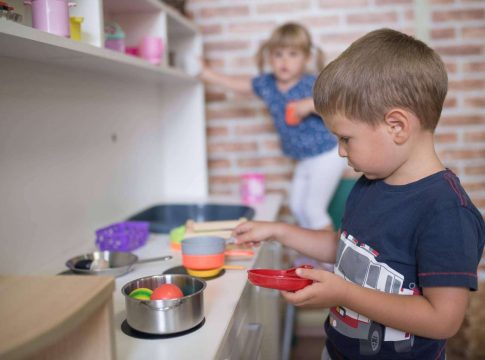 Por otro lado, jugar a “la casita” ayuda al niño a expandir su vocabulario y a fluir en las conversaciones debido a que durante el desarrollo de este tipo de recreación las conversaciones pueden ser infinitas. Le ayuda a practicar colores, números, nombres, oraciones, etc. Por último, no hay mejor juego para aprender el significado de hábito y rutina que jugar con una casa o una cocina de madera, ya que allí podrán tomar conciencia de la secuencia de actividades que se pueden realizar en un día.