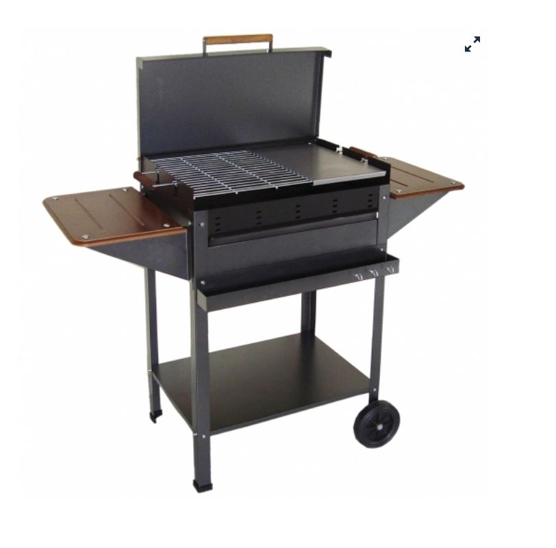Si la anterior barbacoa que te acabamos de mostrar, aun pareciéndote una opción interesante, no encaja del todo con lo que buscas porque necesitas una que tenga un tamaño bastante más grande, te presentamos la siguiente opción. Se trata de una barbacoa en la que podrás usar tanto carbón como leña para preparar tus platos. Mide 48x 57 centímetros y tiene dos prácticas bandejas a los lados para que puedas ir poniendo la comida que vas a preparar o la que ya has preparado. Al tener disponible un descuento equivalente al IVA su precio se queda en tan solo 139 euros.