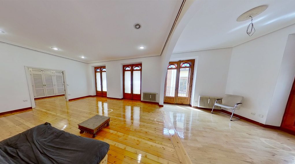 Ubicado en la segunda planta, con ascensor, el edificio se distribuye en esquina y cuenta con 8 balcones con vistas a dos de las calles más tranquilas y con encanto del barrio de las letras. Actualmente la vivienda está para reformar, y además de los dormitorios y los baños, cuenta con un amplio salón, comedor y la cocina independiente.