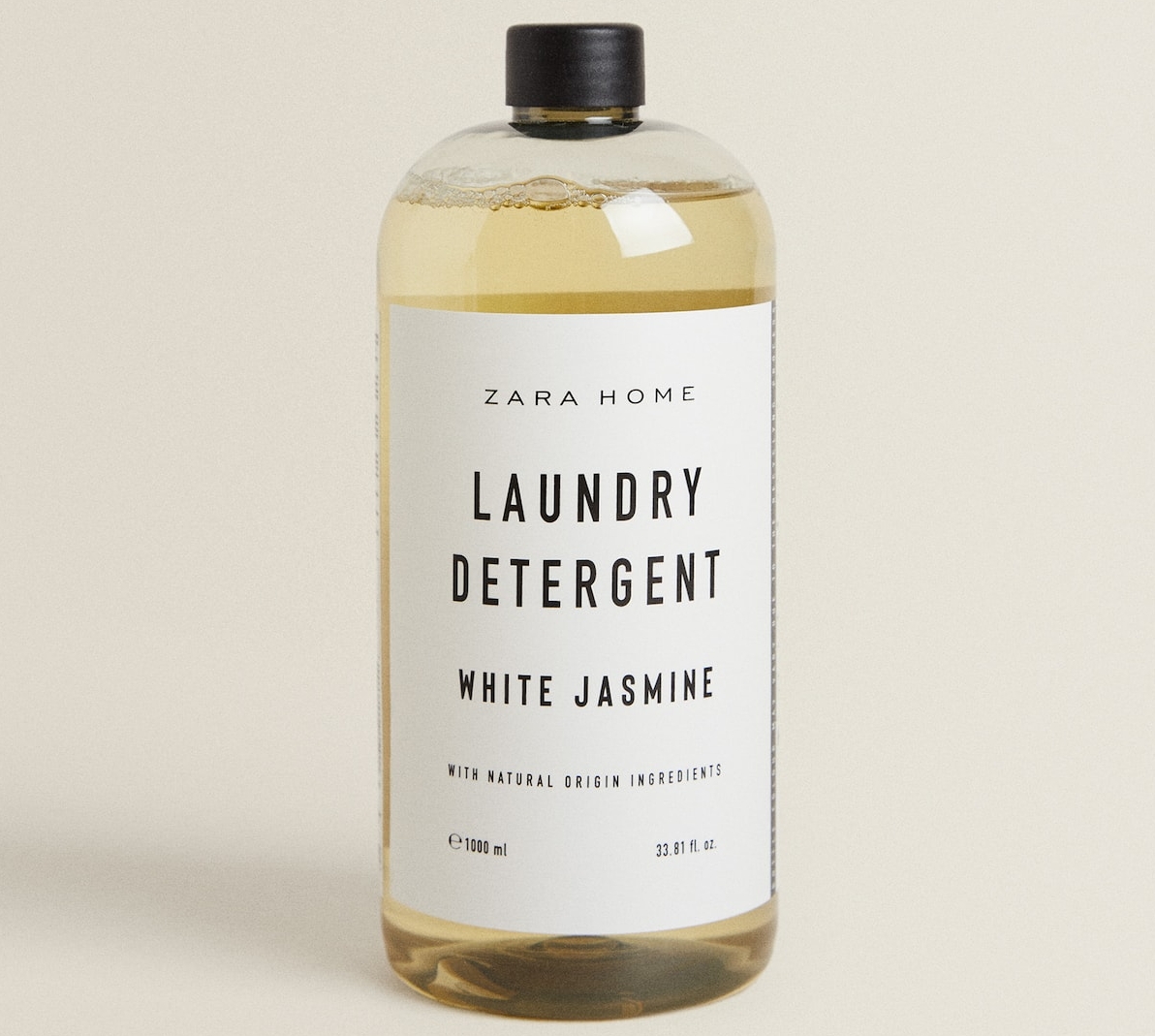 Uno de los productos más peculiares de Zara Home es el detergente para ropa que podrás encontrar en formato 1 litro por 9,99€. No todo son objetos de decoración, también hay cosas como esta fórmula perfumada con aroma a jazmín e ingredientes naturales (lirio de los valles, almizcle blanco).
