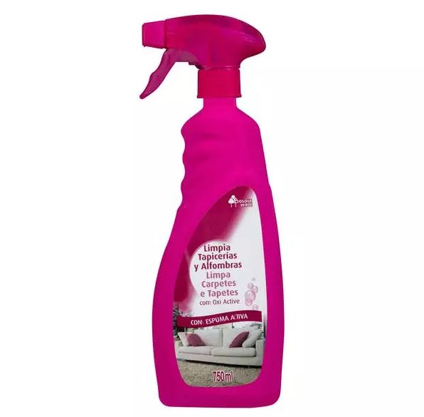 Tienes que probar con este maravilloso limpia tapicería y alfombras con espuma activa Bosque Verde con pistola. Después de rociar el producto sobre la tapicería de tus muebles pásale suavemente un cepillo, se activará la espuma y quedarán totalmente limpios, este mismo procedimiento lo usas en tus alfombras. Su precio es de 1.58 euros.