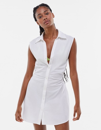 Es probable que encuentres en esta lista justamente lo que estás buscando porque nos hemos dado a la tarea de encontrar. Y, sin duda, este siguiente vestido camisero es perfecto para lo que puedes ir busca. Así, es en Bershka donde mejor podemos encontrar estas prendas que se hacen entremezcla de lo mejor de la camisa clásica para mujer y todas las propiedades de un vestido fresquito para el verano. Y como ves, es todo un reclamo.