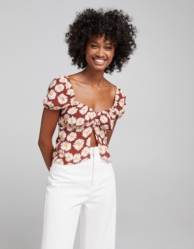 5La blusa con estampado floral más de moda de Bershka