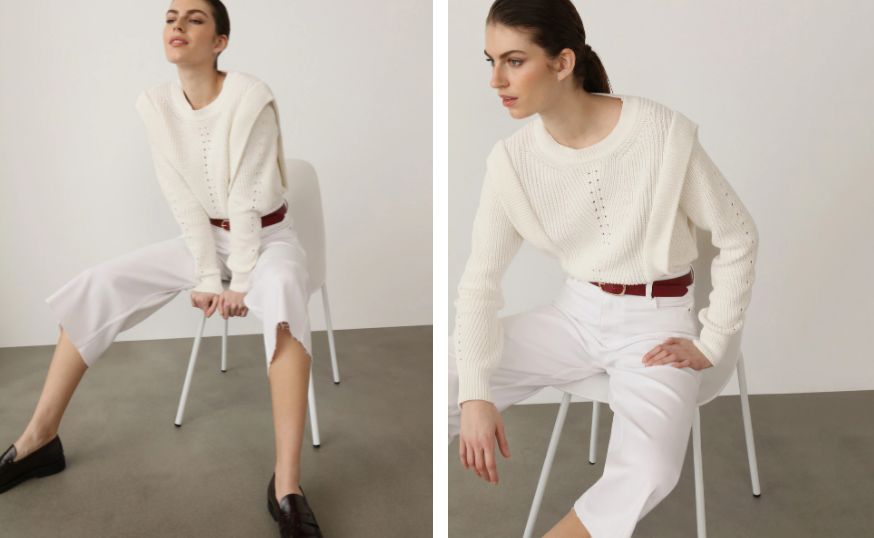Se trata de un precioso jersey como ves, elegante y con estilo, sin duda claramente identificable como novedad. Una prenda con la que no pasarás desapercibida e ideal para vestir elegante y sofisticada. La puedes comprar en blanco o rojo y está hecha 100% en algodón.
