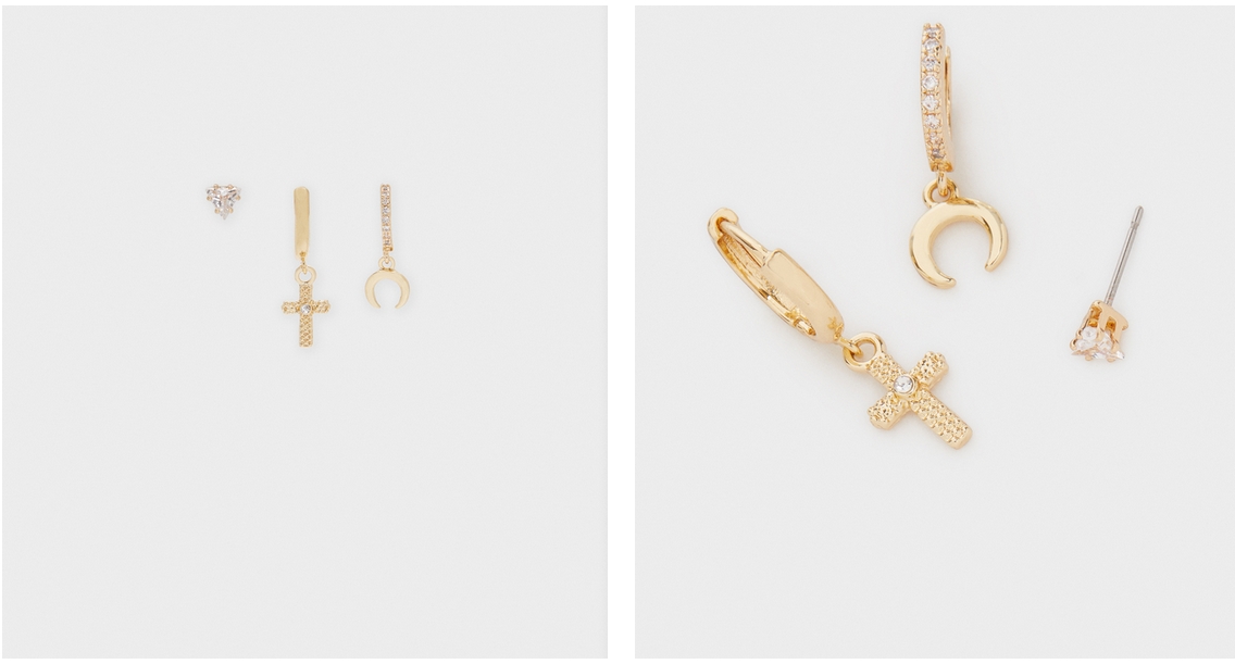 Por 3,99€, tras el descuento, también encontrarás este conjunto de pendientes charms y cristales de Parfois. Disponible en dos acabados para elegir, uno de ellos es el dorado de la imagen y el otro es en color plata. Está compuesto por 3 piezas, tres pendientes diferentes para combinar.