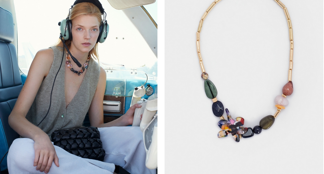Otro de los collares de Parfois que te pueden interesar es corto con piedras y flor. Su precio es de 9,99€. Una pieza única en acabado dorado.