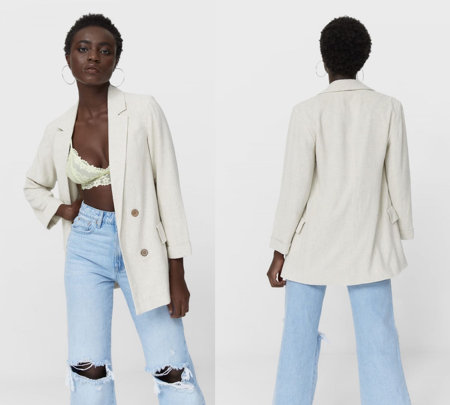 Otra de las mejores americanas de Stradivarius es esta novedosa rústica para llevar abierta. Está disponible en varias tallas y en dos acabados para elegir. Uno de ellos es el color piedra liso, como el de la imagen, y el otro es el beige con rayas. Ambos por 29,99€.