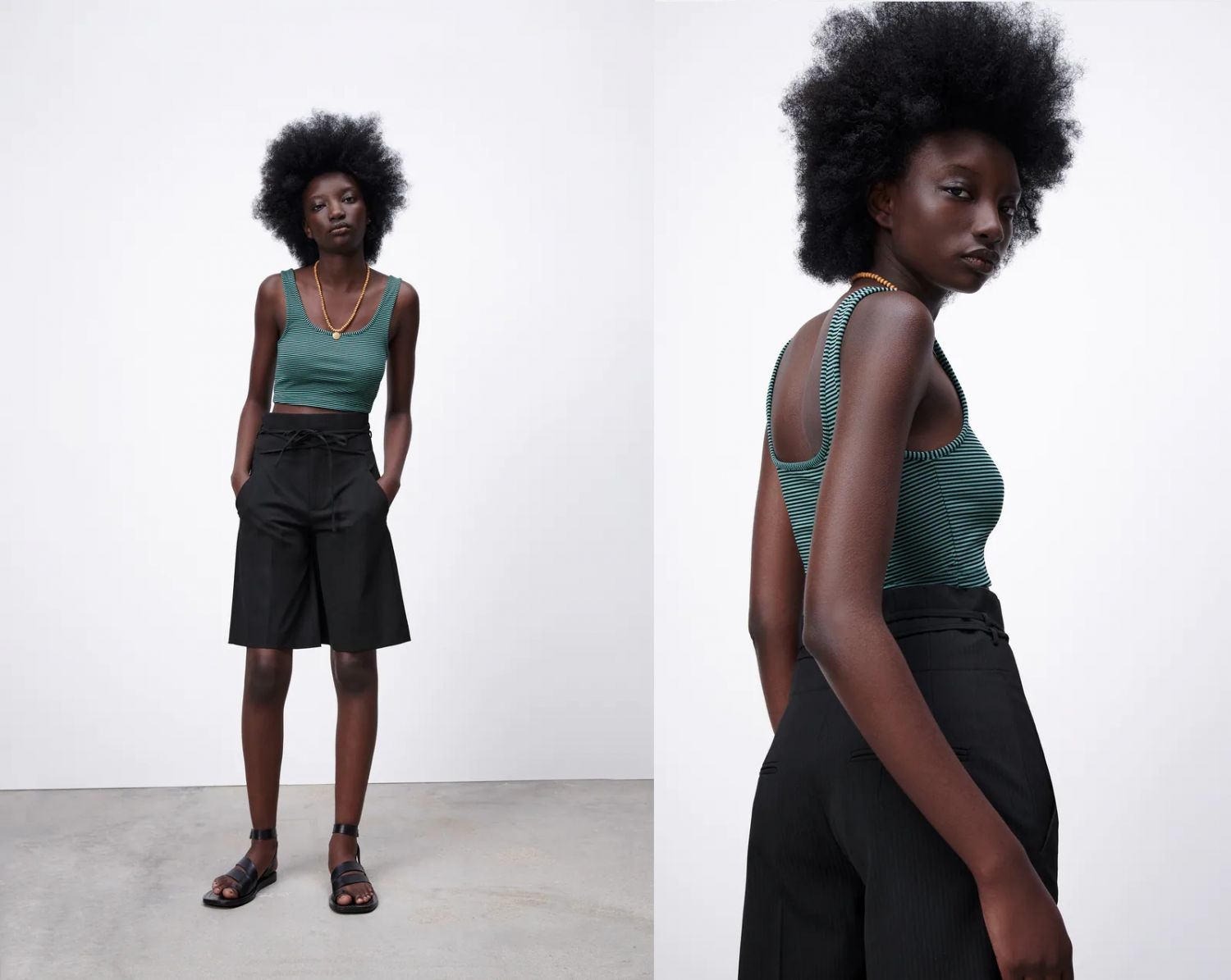 La siguiente novedad de Zara es este top crop de rayas. Lo encontrarás en varias tallas y dos estilos para elegir. Uno es el verde/negro de la imagen y el otro es el azul/blanco. En cualquier caso el precio no varía, es de 3,99€ tras descontarle el 45%.