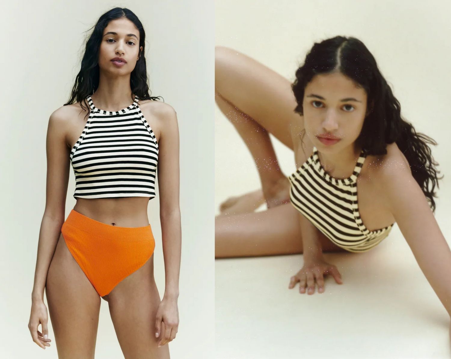 La siguiente prenda de la lista es este otro top halter rib de Zara. Una prenda muy llamativa y atractiva para lucir estos meses de calor, con una combinación de fibras de viscosa en un 87% y de elastano en un 13%, lo que le da una textura muy suave y agradable.