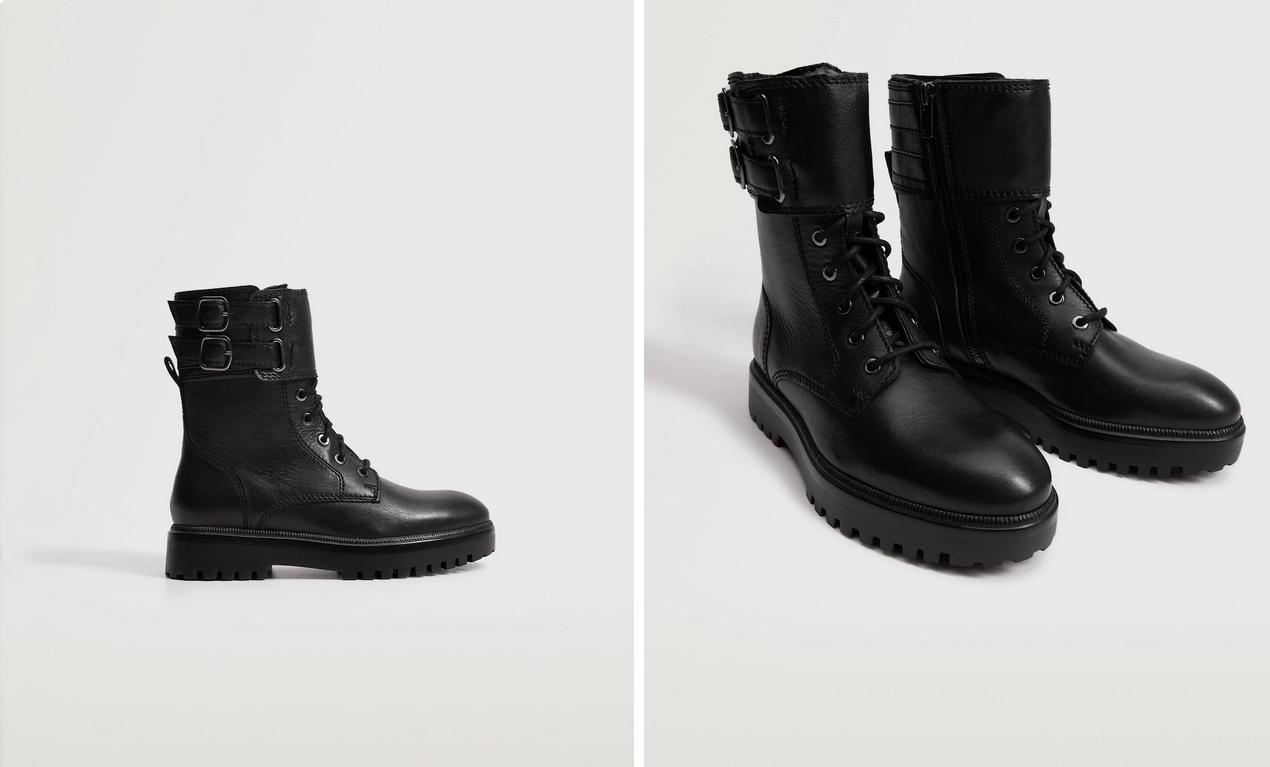 Otra alternativa a los anteriores algo más provocadora son estos botines de piel con cordones y una estética parecida a la militar. Para las que buscan looks más atrevidos. En Mango están disponibles en varias tallas y en color negro por 59,99€.