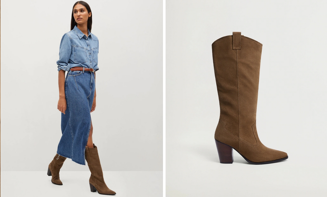 El siguiente artículo es estas otras botas de piel de caña alta de Mango. Su precio es ahora de 35,99€, ya que se le ha aplicado un descuento del 55%. Disponible en varias tallas, y en un único tono marrón tabaco.