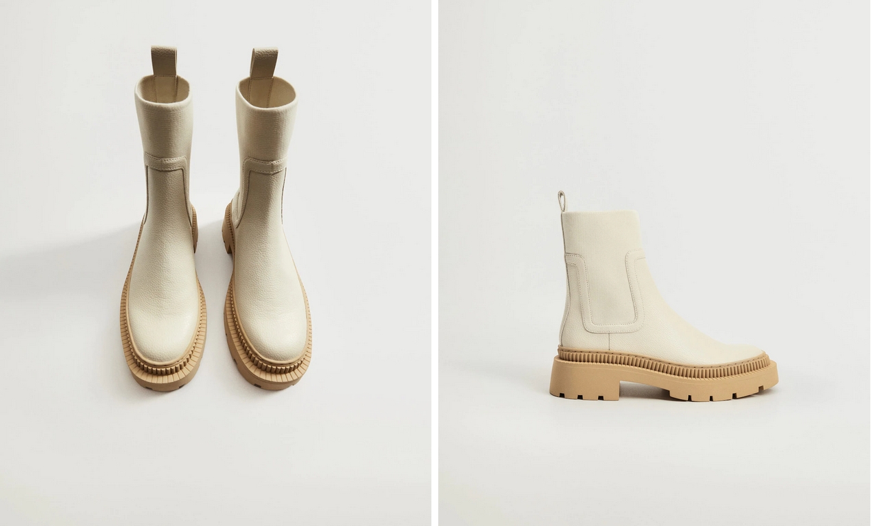 Por último tienes también estos otros botines con suela track de Mango. Pueden ser tuyos por 49,99€, en todas sus tallas y también en los dos colores que se encuentran disponibles: blanco roto y negro. Ambos con una suela en color beige para dar un toque de contraste muy atractivo.
