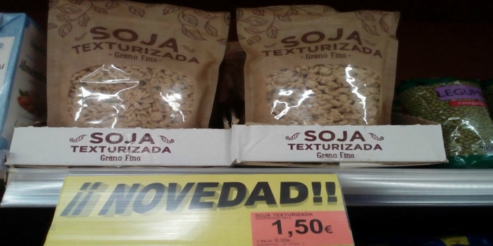Aunque la soja texturizada es fácil de encontrar en herbolarios y tiendas naturales, no es nada fácil encontrarla en supermercados. Es cierto que lleva un tiempo en la parte ecológica de Carrefour, pero el precio es desorbitado. Mercadona es el primer supermercado en sacar soja texturizada a un precio muy económico y es por eso por lo que es, precisamente, un producto singular.