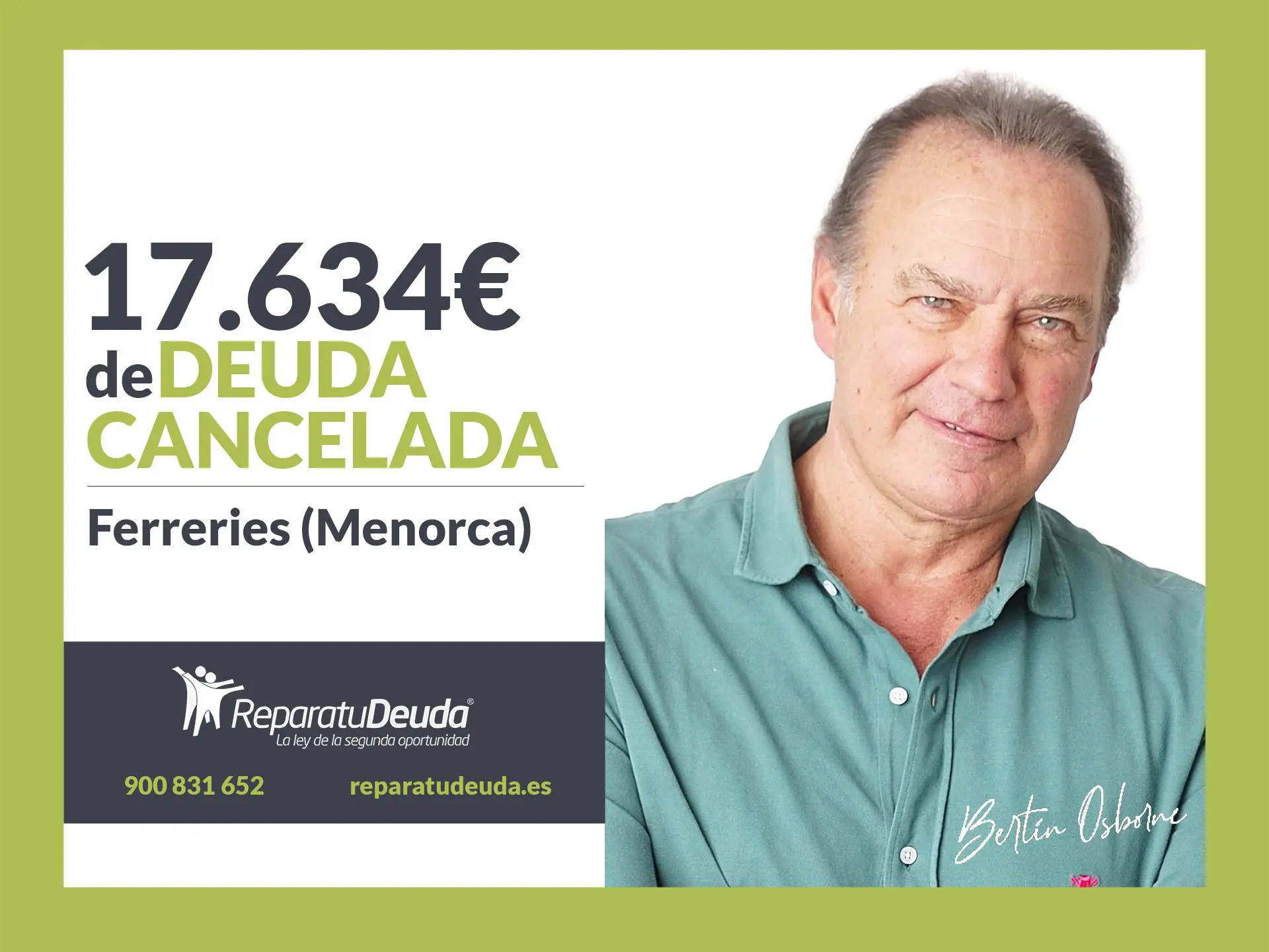 Repara tu Deuda Abogados, despacho de abogados líder en España en la tramitación de la Ley de Segunda Oportunidad, ha logrado una cancelación de deuda en Ferreries (Menorca). Mediante la gestión de Repara tu Deuda Abogados, el Juzgado de Primera Instancia e Instrucción nº1 de Ciutadella de Menorca (Baleares) ha dictado exoneración del pasivo insatisfecho en el caso de CE, que había acumulado una deuda de 17.634 euros a la que no podía hacer frente. VER SENTENCIA