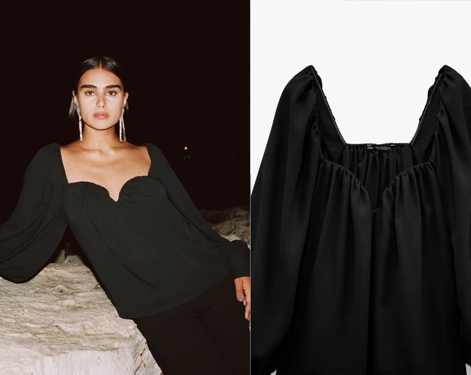 Esta blusa de escote en forma de corazón también está disponible en Zara, con un precio de solo 25,95€ en todas las tallas disponibles, y en tono negro.