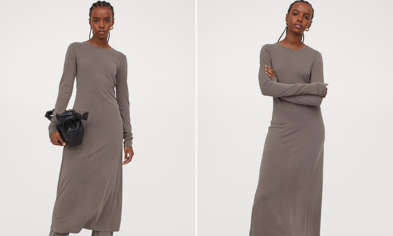 H&M vende esta alternativa al vestido anterior, un modelo largo con modal por 39,99€. Disponible en varias tallas y en tono beige grisáceo oscuro. Una prenda larga para cuando los días menos calurosos lo requieran, pero sin perder un ápice de elegancia.