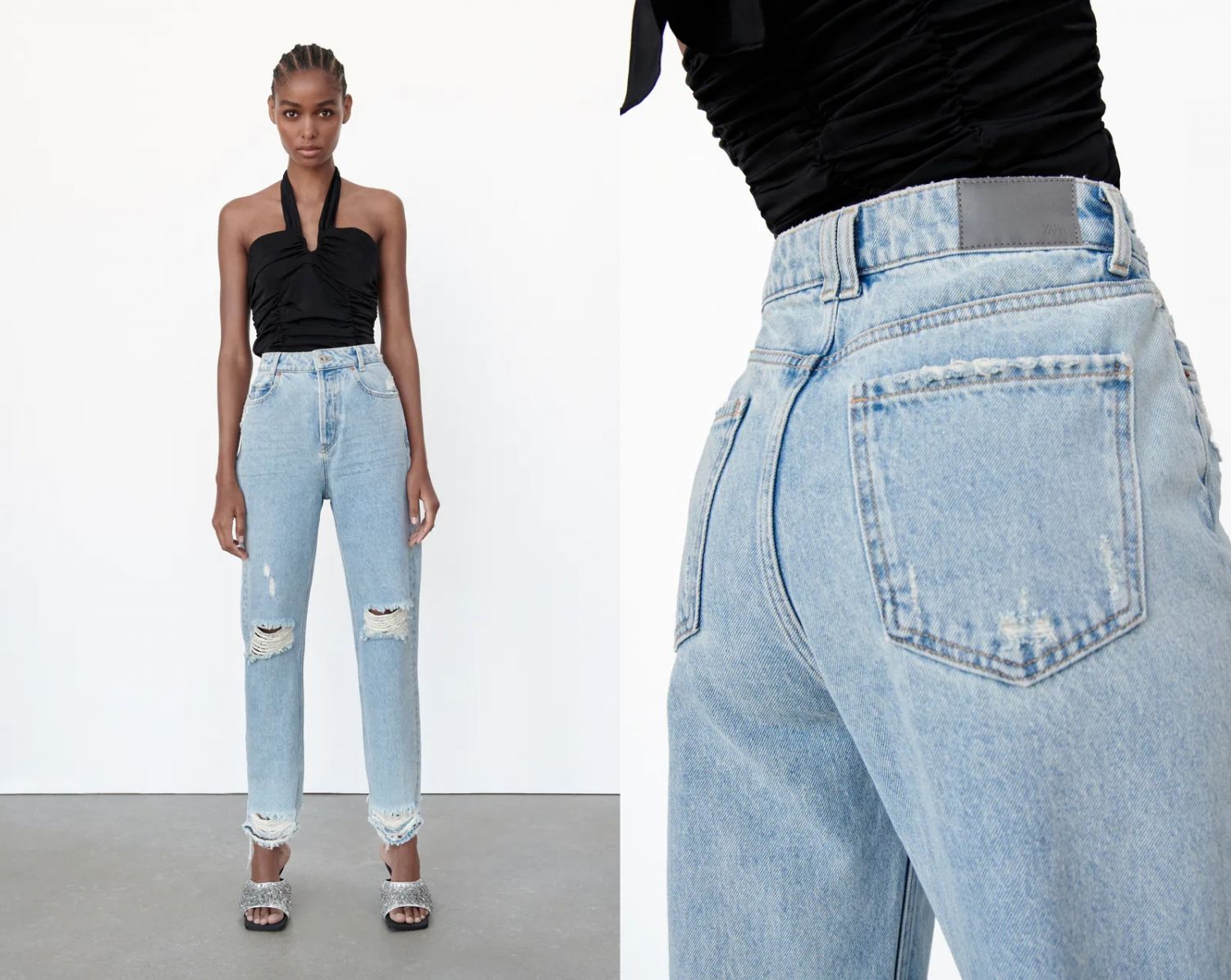 Esta otra alternativa de Zara, los jeans Z1975 mom fit rotos, también está disponible por el mismo precio que los anteriores, 22,95€. Listos en varias tallas y solo con acabado azul claro y detalles rotos. En cuanto a la composición, son de algodón, con al menos un 20% reciclado.