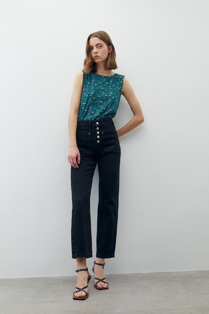 Esta camiseta de tirantes estampada, es una delicada prenda de vestir para la mujer activa como tú. Moderna con cuello caja, estampada y mangas sisa. Confeccionada totalmente en algodón, para tu mayor comodidad y frescura.