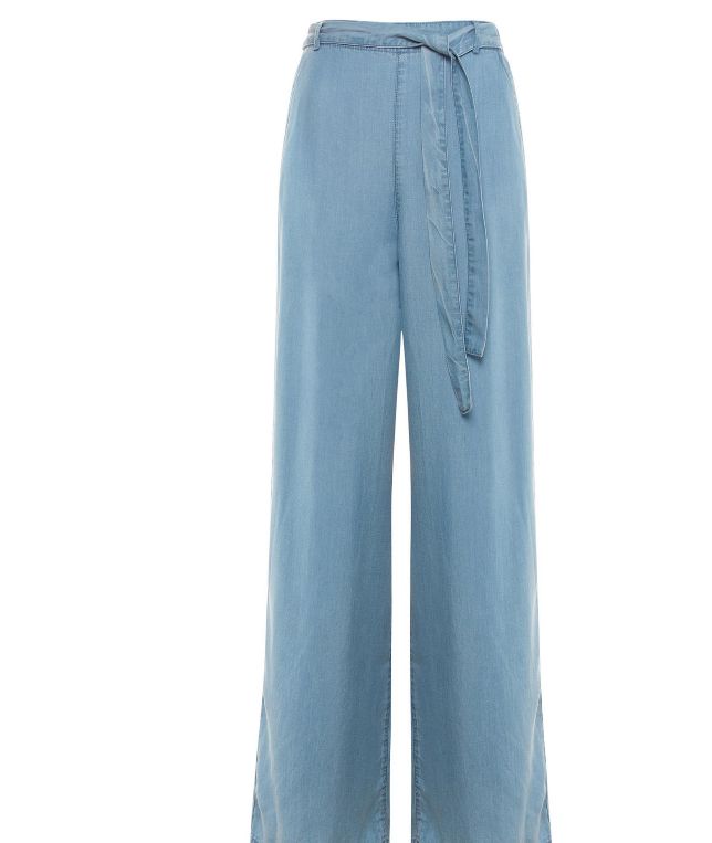 1Vaquero azul de tencel de pernera ancha con cinturón