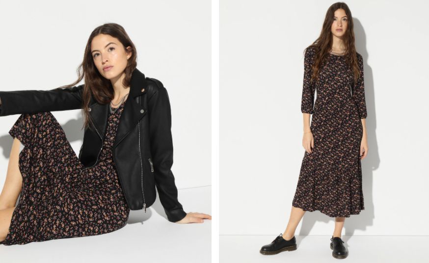Vamos con otro marca habitual y con grandes modelos y ofertas en El Corte Inglés. Por ejemplo este vestido largo estampado perfecto para llevar este otoño, sobre todo para días benignos. elegante y sobrio, combina perfecto con una cazadora, como la de la foto.