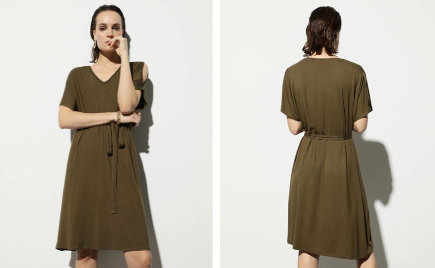 Está fabricado en un 95% de viscosa y un 5% de elastano. Lo tienes disponible en la web en color musgo o negro. Un modelo que pega mucho con la época otoñal, dando otro toque más sobrio pero sin perder la comodidad.