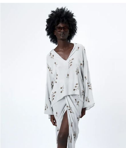 Una de las cosas que más nos gustan de Zara es que su equipo de diseñadores es capaz de diseñar prendas de ropa muy originales. Justo tal y como ocurre con esta blusa de la que queremos hablarte a continuación. Se trata de una prenda que destaca de primeras por el detalle de aplicación de joyas que a lo largo de la prenda se combinan en detalle. Por lo demás, tiene un bonito escote en forma de pica, unas mangas largas amplias y un cuello con solapa. Además, su precio no nos parece nada desorbitado para lo que ofrece, y es que si la quieres comprar tan solo tendrás que pagar por ella 49’95 euros.