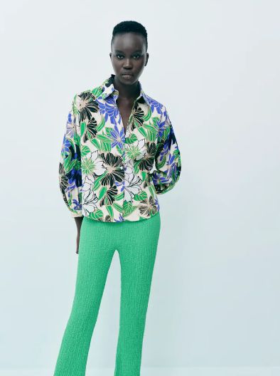Tal y como te comentábamos antes, el catálogo de Zara es tan amplio que una se puede encontrar en él casi cualquier tipo de prenda que se proponga. Así que si el estampado de flores de la blusa que te acabamos de mostrar no te ha terminado de convencer, quizá este sí que lo haga. Es mucho más marcado que el de la anterior prenda. Además, tiene una manga larga que acaba en puño con pliegues y tiene el cuello en forma de solapa. Su precio es de solo 25’95 euros.