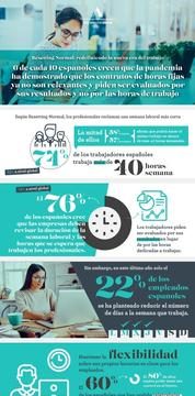 Asimismo, el 76% de los españoles cree que las empresas deben revisar la duración de la semana laboral y piden ser evaluados por sus resultados en lugar de por las horas trabajadas, según el informe.