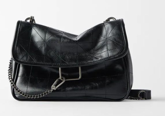 Si lo que encaja mejor con tu estilo es algo un poco más rockero, en Zara tienes este bolso bandolera, diseñado con pespuntes con formas geométricas. El asa de hombro es de cadena que le aporta ese toque rockero y también tiene un asa de mano, para poder llevarlo de varias maneras. Cierra con solapa y un imán decorado con una pieza metálica que simula plata envejecida. Está fabricado en poliuretano y se encuentra disponible en tres colores: negro, burdeos y crudo. Tiene un precio de 29,95€.