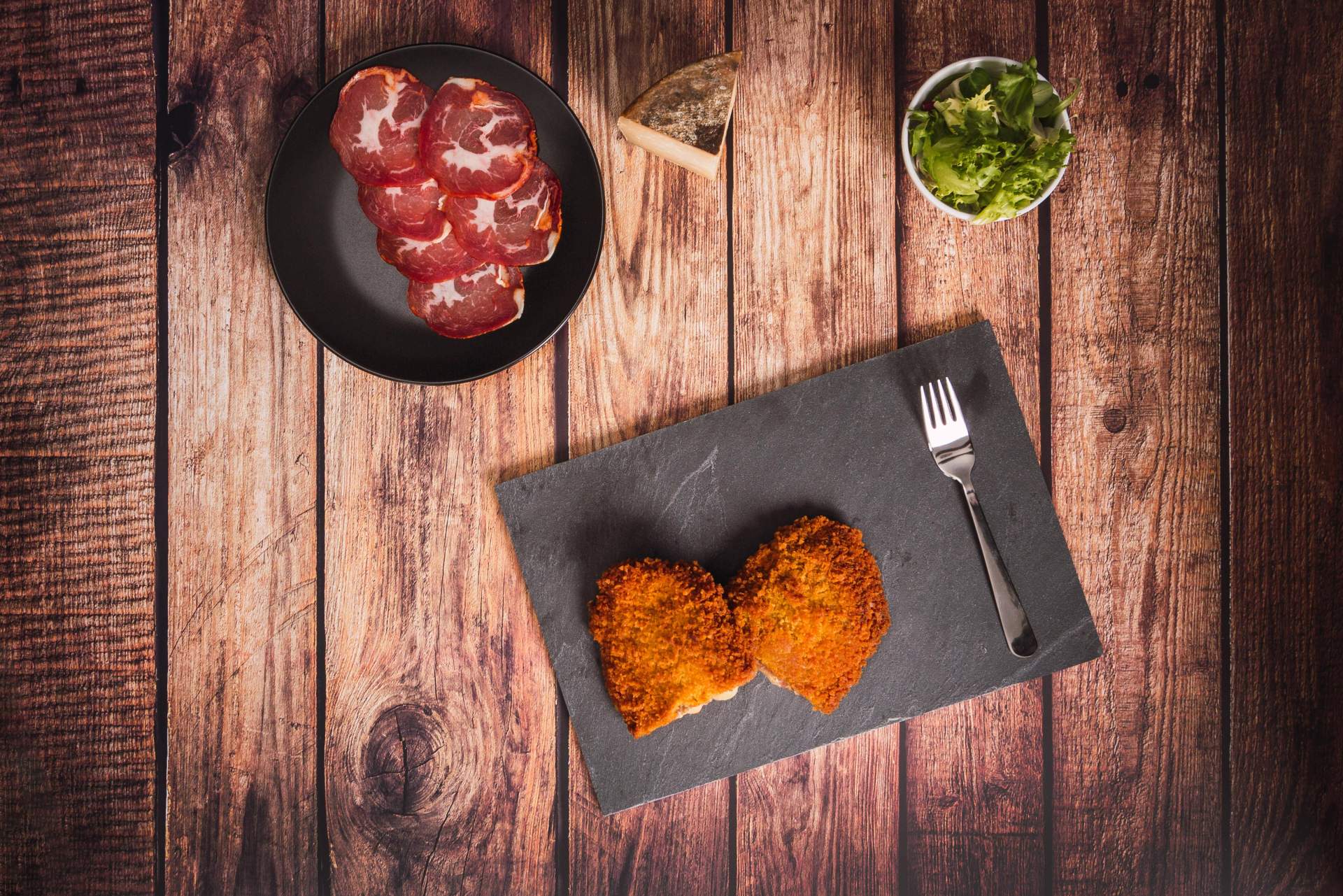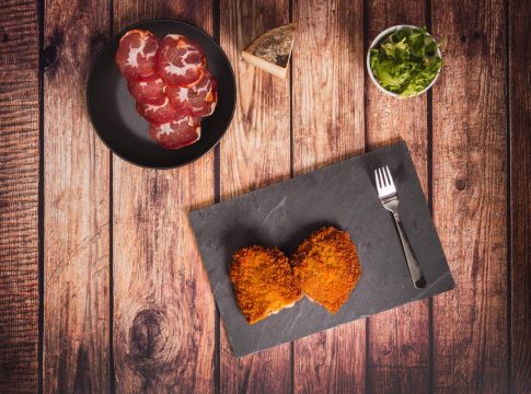 Para los amantes del pollo, está disponible en la tienda el “Pío pío”, un cachopo en el que la capa de carne de ave recubre un relleno de bacon, boletus y doble porción de queso edam. Otra de las opciones de la carta es el cachopo “Cua cua”, hecho de ternera rellena con foie de pato y cebolla caramelizada.