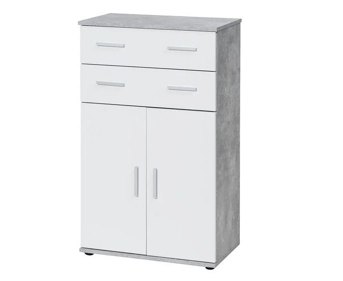 Esta cómoda de diseño atemporal se adapta a cualquier estilo decorativo gracias a su sencillez y elegancia. Tiene dos puertas con estantes de altura regulable y dos cajones, ofreciendo una gran capacidad para el almacenaje. Lleva tiradores de metal, y cajones con rieles también de metal para una apertura y cierre suaves. El revestimiento es de melamina, muy resistente y fácil de limpiar con un paño húmedo. Las medidas son 60 x 98 x 33 cm y el precio de este producto estrella de Lidl es de 49,99€.