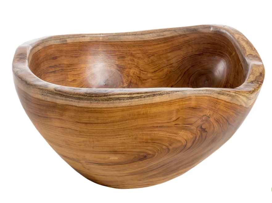 219€ es lo que cuesta este lavabo Sarong marrón de madera y aspecto rústico de Leroy Merlin. Sus medidas son de 35 cm de diámetro, y 18 cm de altura sobre la encimera.