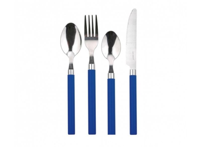 Si la anterior cubertería, aun habiéndote parecido interesante, no te acaba de convencer porque sus piezas tienen los mangos de colores, lo mismo esta encaja más con lo que estás buscando. Porque se trata de una cubertería que tiene los mangos de color azul. Esa es su gran diferencia, porque por lo demás también incluye 24 piezas y tiene un precio de 7’99 euros.