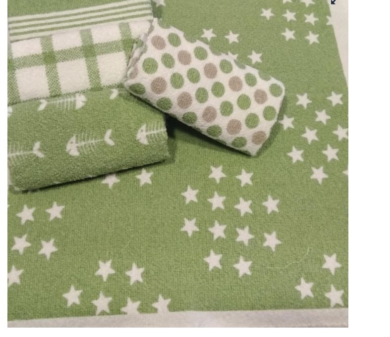 Si los sets de paños de cocina que te acabamos de mostrar te han gustado pero en realidad prefieres que tengan un color más vivo puedes optar por este, que incluye 5 paños de color verde y que cuesta 5’99 euros.