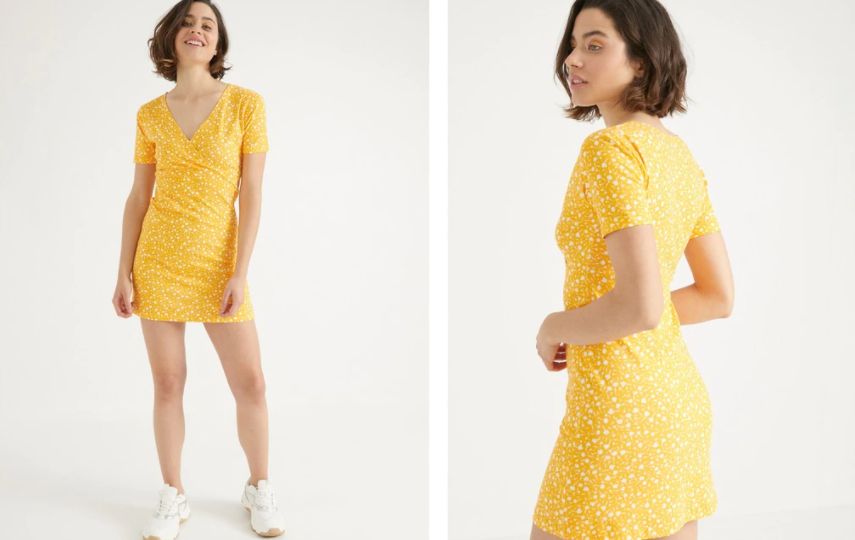 Seguimos con los vestidos cortos, aunque en este caso cruzado. Se trata de un vestido corto de manga corta con estampado de flores en contraste y cuello de pico. Un modelo de lo más primaveral o veraniego que lo tienes en El Corte Inglés a un precio de chollo: 5,99 euros. Y es un chollo en especial porque está hecho casi al 100% en algodón, por lo que de la máxima calidad y comodidad. Se vende solo en amarillo y lo puedes adquirir en este enlace.