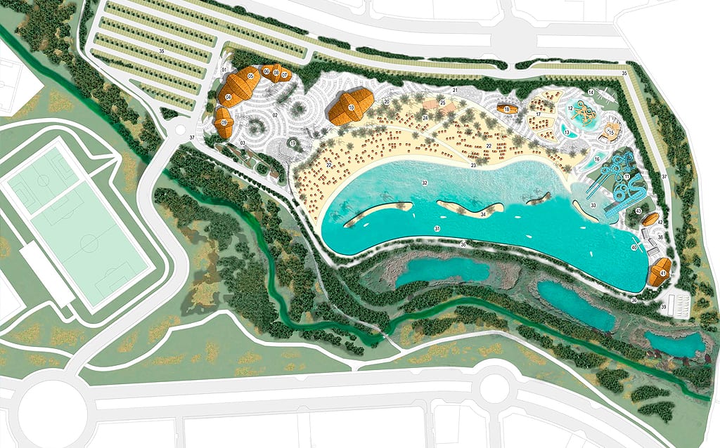El Presidente del Grupo Rayet, Félix Abánaes, ha explicado que Alovera Beach se trata de un proyecto totalmente innovador que transformará esta pequeña localidad de Guadalajara en un centro posicionado como un ejemplo europeo de tecnología, actividades al aire libre y sostenibilidad. Contará también con más de 1.000 plazas de aparcamiento con un acceso fácil y cómodo comunicado directamente con la A-2, por lo que el núcleo urbano de Alovera no sufrirá congestiones de tráfico. El acceso se realizará por el oeste, por la Avenida de España, habrá que bordear el estadio de fútbol y cruzar el Arroyo Malvecino, a través de una pasarela especialmente construida para tal fin. Otra posible alternativa secundaria será un acceso desde la avenida del Príncipe de Asturias.