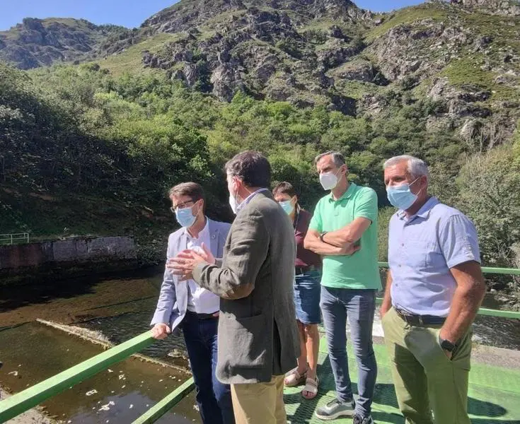El consejero ha estado acompañado por el alcalde, Marcelino Martínez, y por Emilio Fernández, director de centrales hidráulicas de EDP. También ha acudido el director general de Empleo y Formación, Pedro Fernández-Raigoso.