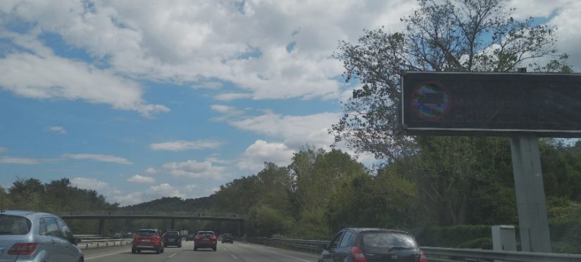 En todo el trayecto tan sólo se ha visto un vehículo de los Mossos d’Esquadra, apostado en una de las salidas para auxiliar en las innumerables averías o perseguir a algún sospechoso. En los peajes, nada más que los conos para marcar los límites de la vía y sin señalización previa. Normal que algunos de ellos estuvieran tumbados en el suelo debido a la densidad del tráfico y al sinuosas curvas que dibujaban en la vía.