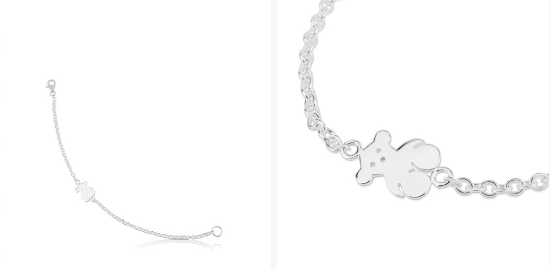 Por 39€ tienes uno de los productos más vendidos de Tous. Quizás por su belleza o quizás porque sea una de las joyas más representativas de esta firma, con el clásico logo del osito en esta pulsera de plata.
